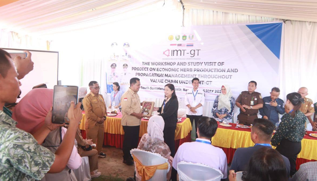 Dengan tema The Workshop and Study Visit on Economi Herb Production and Propagation Management Throughout Value Chain Under IMT-GT, tiga delegasi ini berkunjung dan melihat langsung tanaman Laos Merah sekalian mempelajari cara budi daya Laos Merah yang terkenal ada di Desa Merah Mata, Kabupaten Banyuasin.