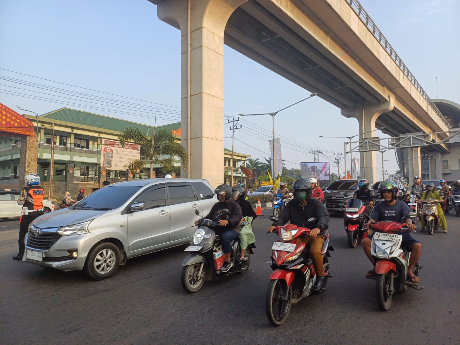 Kendaraan masuk ke jlaur Contraflow dari RSUD Siti Fatimah dan keluar di depan Eks SPBU KM 5 (depan Korem).