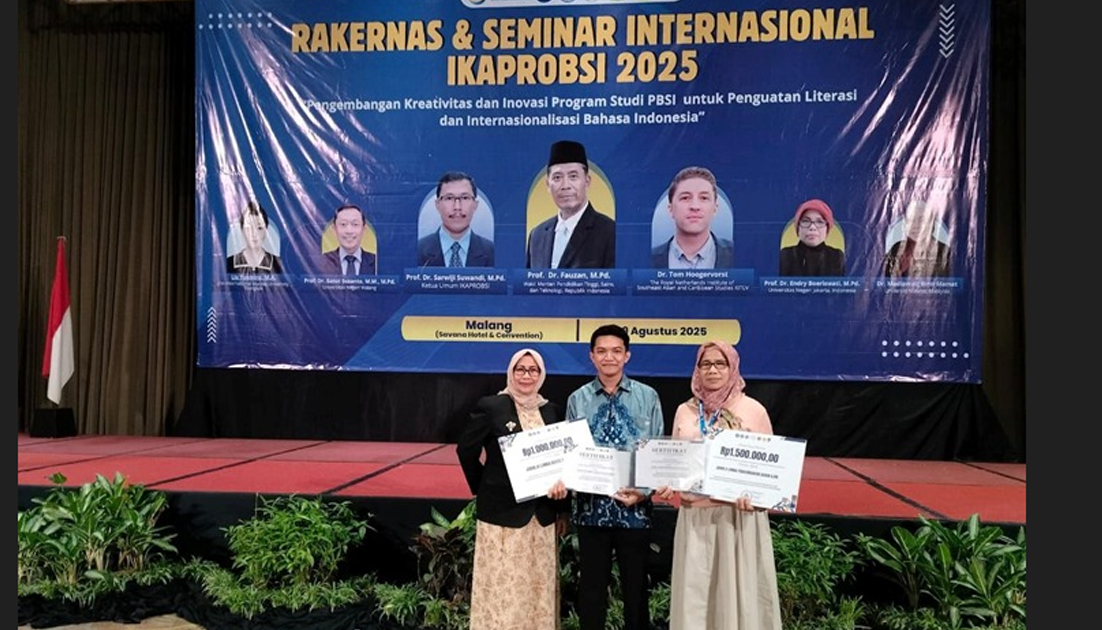 TRANS SUMSEL – Dua penghargaan diperoleh Muhammad Zakiul Fikri, Mahasiswa Magister Pendidikan Bahasa, Fakultas Keguruan dan Ilmu Pendidikan, Universitas Sriwijaya Palembang. Mahasiswa asal Bangka Belitung yang biasa dipanggil Zaki ini mendapat juara 2 lomba Pengembangan Bahan Ajar dan juara 3 lomba Karya Tulis Ilmiah dalam acara Kompetisi Kreativitas Mahasiswa 2025 yang diumumkan dalam acara Rapat Kerja Nasional dan Seminar Internasional IKAPROBSI di Malang, 7—9 Agustus 2025.