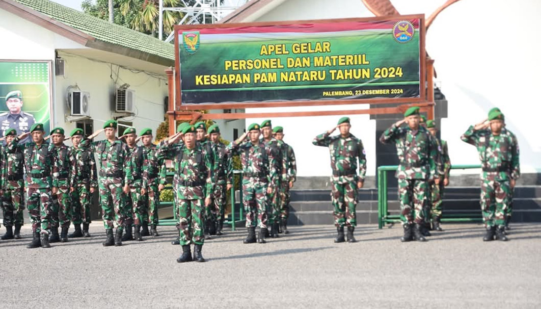 Transsumsel.com – Dalam menyambut perayaan Natal 2024 dan tahun baru 2025, Korem 044/Gapo menggelar Apel Kesiapan Pengamanan Nataru 2024, bertempat di Lapangan Makorem 044/Gapo Jl. Jenderal Sudirman Km. 4 Kota Palembang.
