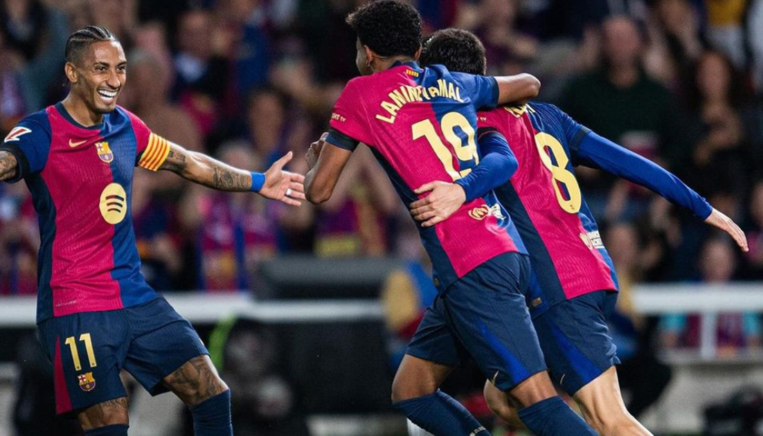 Transsumsel.com – Barcelona membantai Bayern Munich dalam lanjutan Liga Champions 2024/2025. Blaugrana menang telak dengan skor 4-1, bermain di Camp Nou, Barcelona, Spanyol, Kamis (24/10/2024) dini hari WIB. Laga Barcelona vs Bayern berjalan dalam tempo cepat. Kedua tim memeragakan permainan menyerang. Pada pertandingan ini Raphinha bermain apik, dengan mempersembahkan hat-trick.