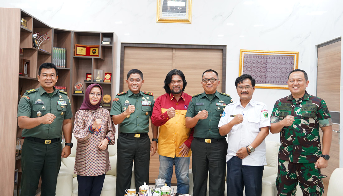 Pangdam II/Sriwijaya didampingi oleh Kaajendam II/Sriwijaya, Kabintaljarahdam II/Sriwijaya, serta Dandim 0418/Palembang, menyambut hangat kehadiran Ketua Komunitas Budaya Batanghari 9, Bapak Vebri Al Lintani, bersama jajaran pengurus lainnya.
