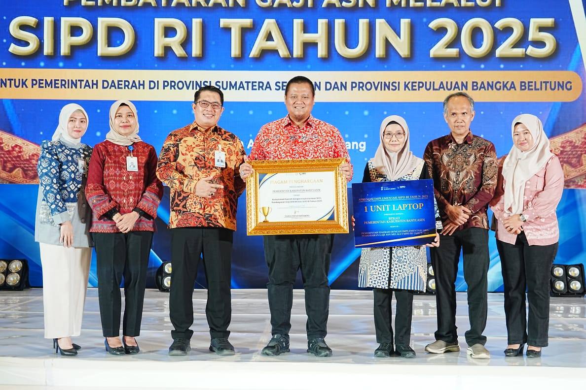 Penghargaan tersebut diserahkan dalam acara Apresiasi Implementasi Pembayaran Gaji ASN melalui SIPD RI Tahun 2025 bagi pemerintah daerah Provinsi Sumatera Selatan dan Provinsi Kepulauan Bangka Belitung yang digelar di Ballroom Hotel Aryaduta Palembang, Kamis (29/01/2026).